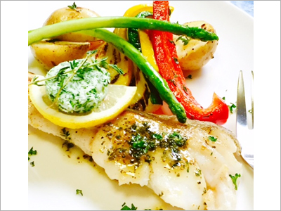 1 . メイン旬魚のグリル香草バターソース